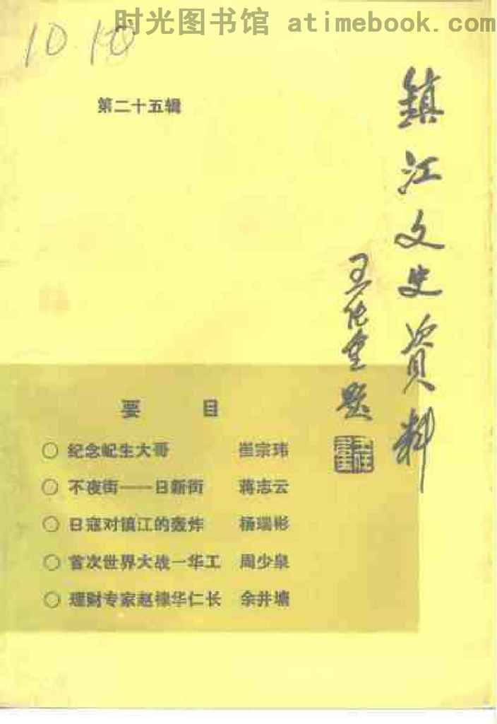 | 网盘路径:/时光图书馆珍藏系列/书籍文件/老图书/《镇江文史资料_第25辑》电子版合集.db | ||
