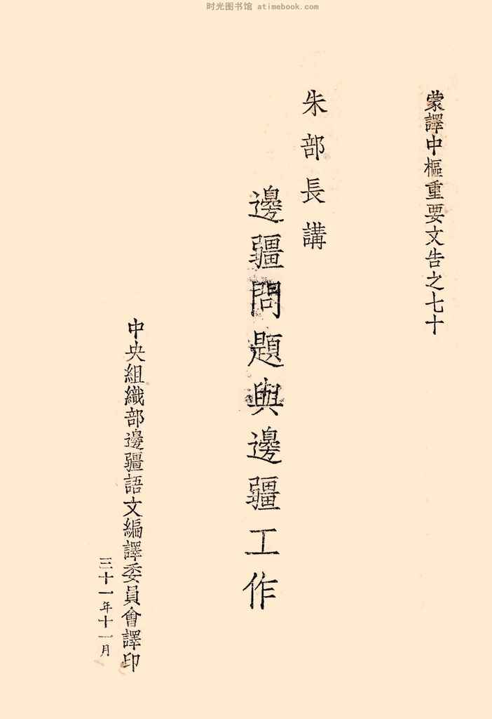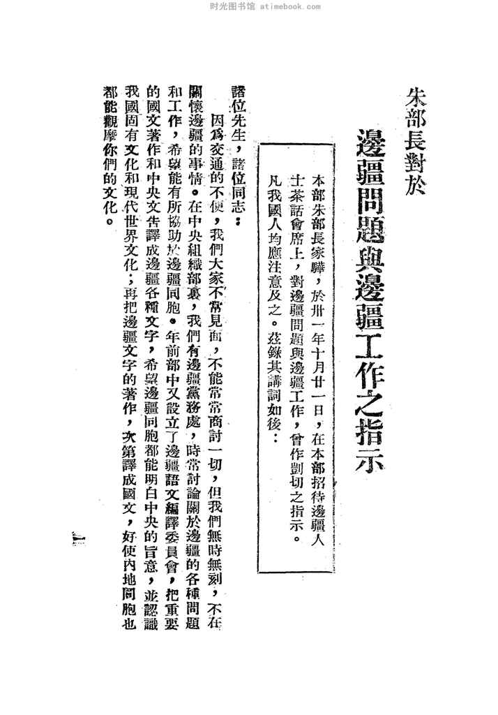 | 网盘路径:/时光图书馆珍藏系列/书籍文件/老图书/《朱部长讲边疆问题与边疆工作》电子版合集.db | ||