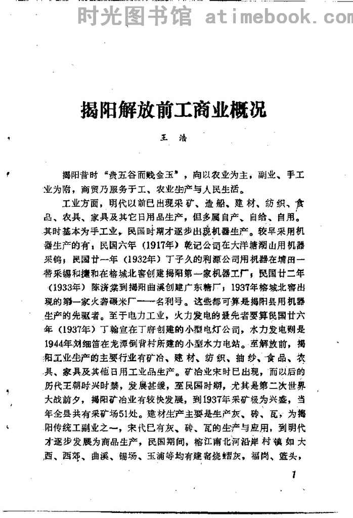 | 网盘路径:/时光图书馆珍藏系列/书籍文件/老图书/《揭阳文史_总第13辑_揭阳工商经济史料专辑_上辑》电子版合集.db | ||