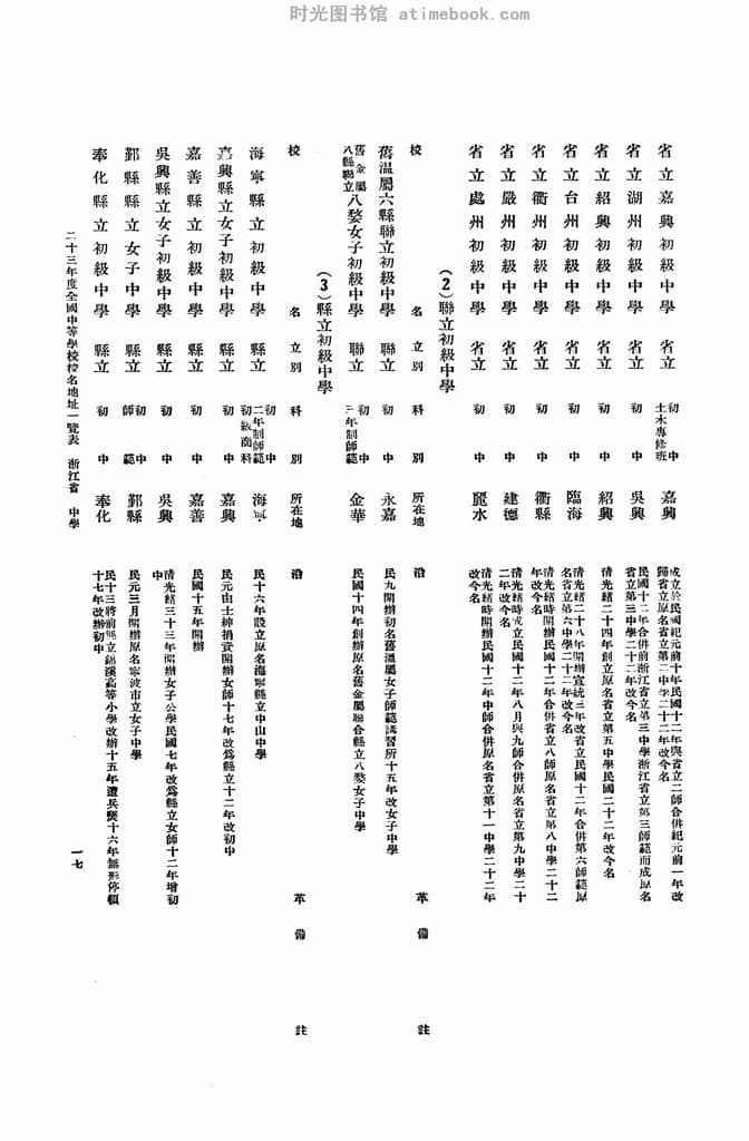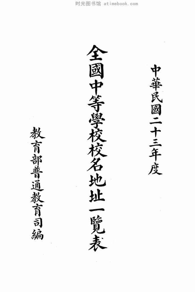 | 网盘路径:/时光图书馆珍藏系列/书籍文件/老图书/《中华民国二十三年度全国中等学校校名地址一览表》电子版合集.db | ||