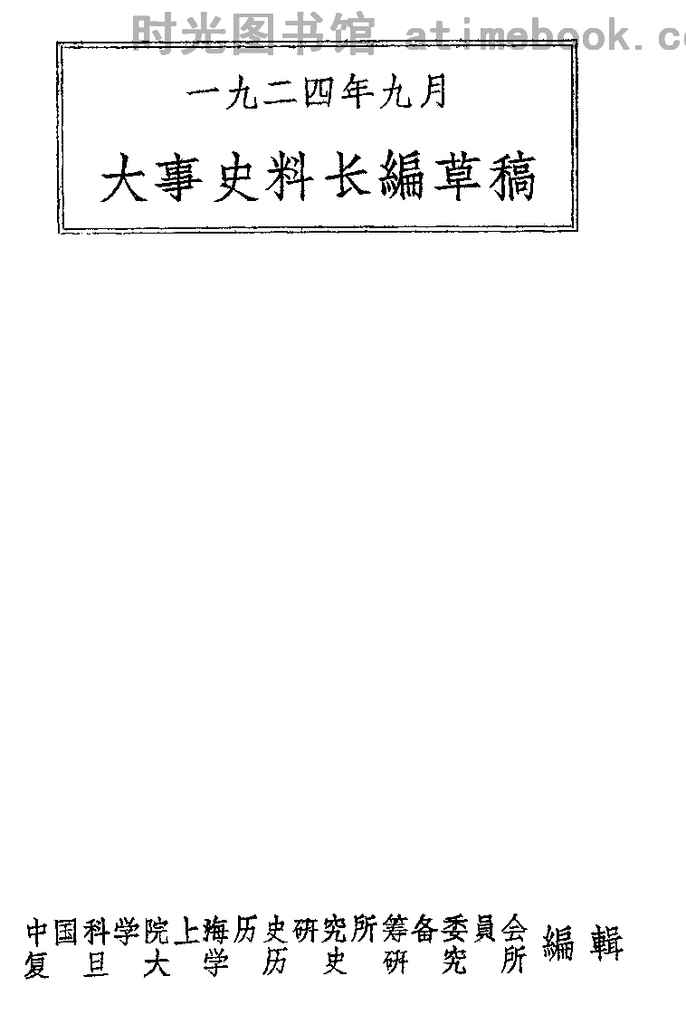 | 网盘路径:/时光图书馆珍藏系列/书籍文件/老图书/《大事史料长编草稿(一九二四年九月)》电子版合集.db | ||
