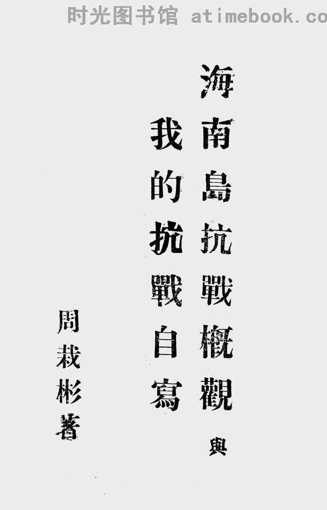 | 网盘路径:/时光图书馆珍藏系列/书籍文件/老图书/《海南岛抗战概观与我的抗战自写》电子版合集.db | ||