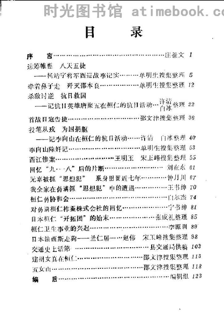 | 网盘路径:/时光图书馆珍藏系列/书籍文件/老图书/《桓仁文史资料_第1辑》电子版合集.db | ||