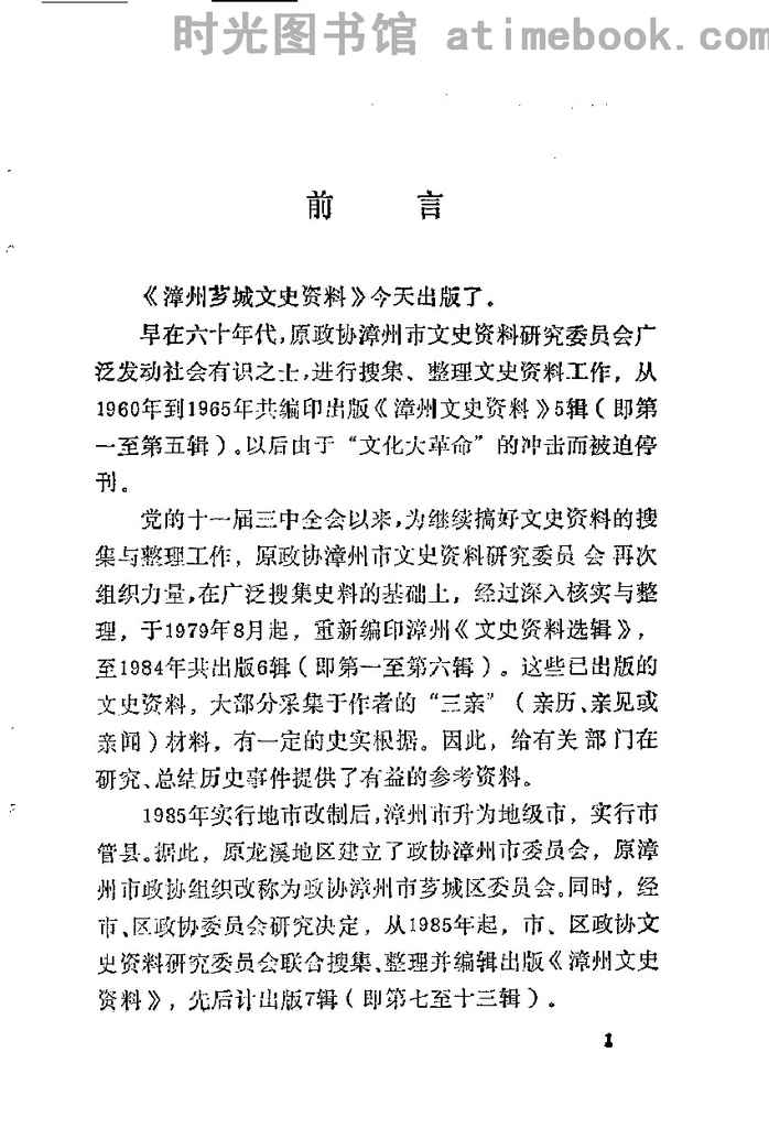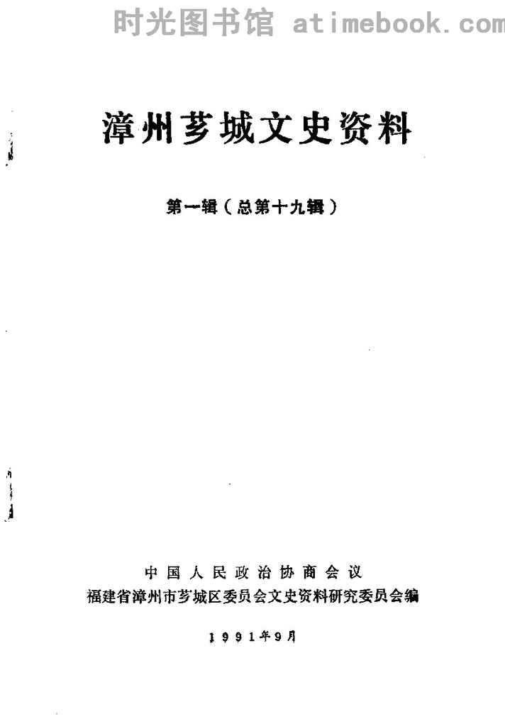 | 网盘路径:/时光图书馆珍藏系列/书籍文件/老图书/《漳州芗城文史资料_第1辑_总第19辑》电子版合集.db | ||