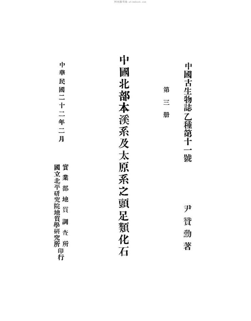 | 网盘路径:/时光图书馆珍藏系列/书籍文件/老图书/《中国北部本溪系及太原系之头足类化石》电子版合集.db | ||