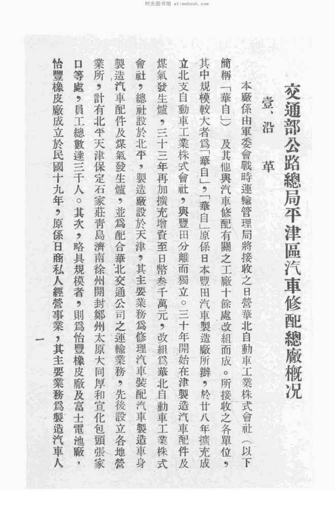 | 网盘路径:/时光图书馆珍藏系列/书籍文件/老图书/《平津区汽车修配总厂概况》电子版合集.db | ||