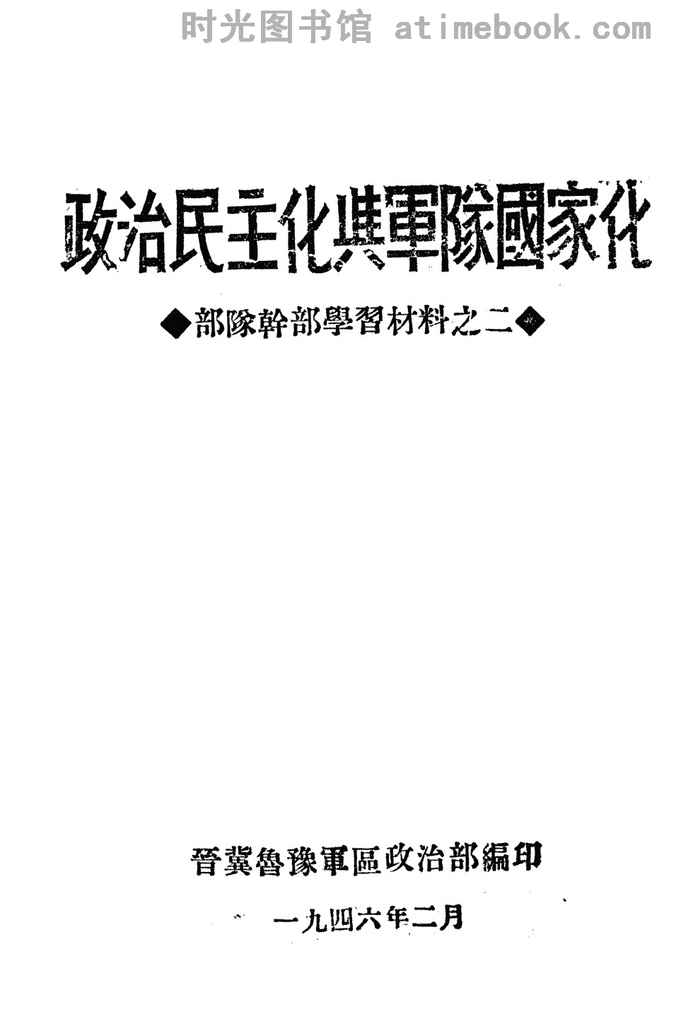 | 网盘路径:/时光图书馆珍藏系列/书籍文件/老图书/《政治民主化与军队国家化》电子版合集.db | ||