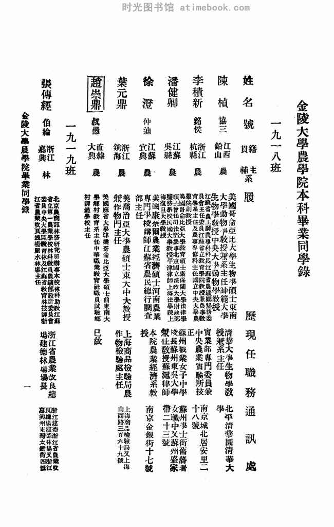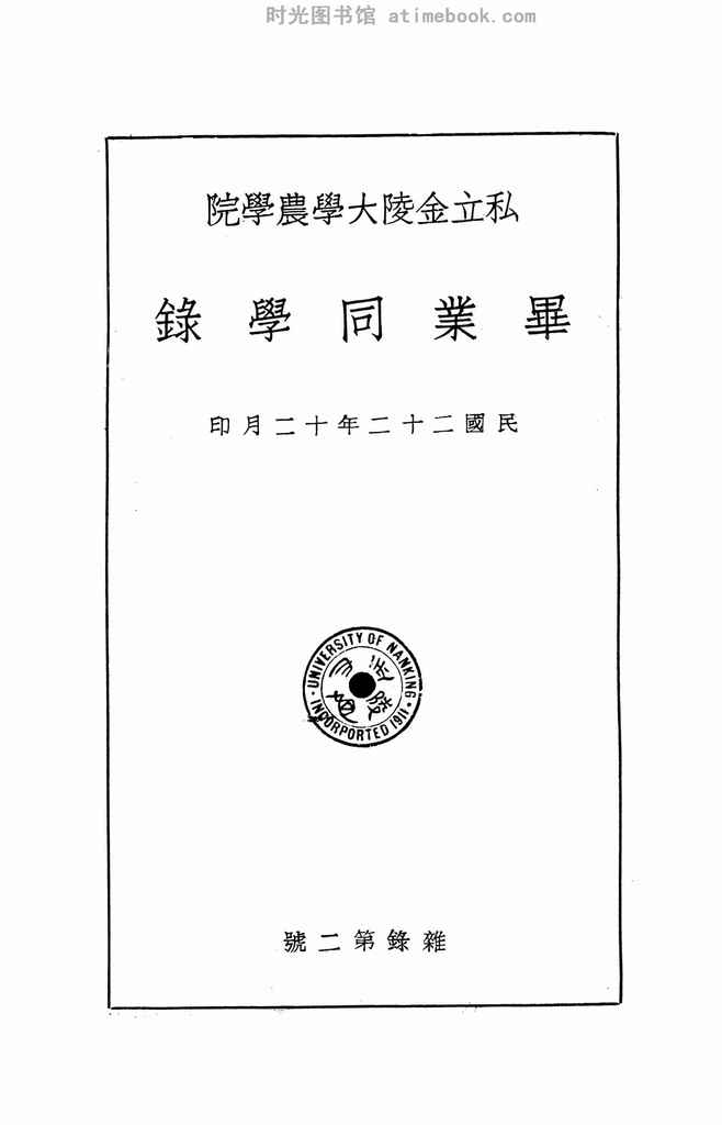 | 网盘路径:/时光图书馆珍藏系列/书籍文件/老图书/《私立金陵大学农学院毕业同学录》电子版合集.db | ||