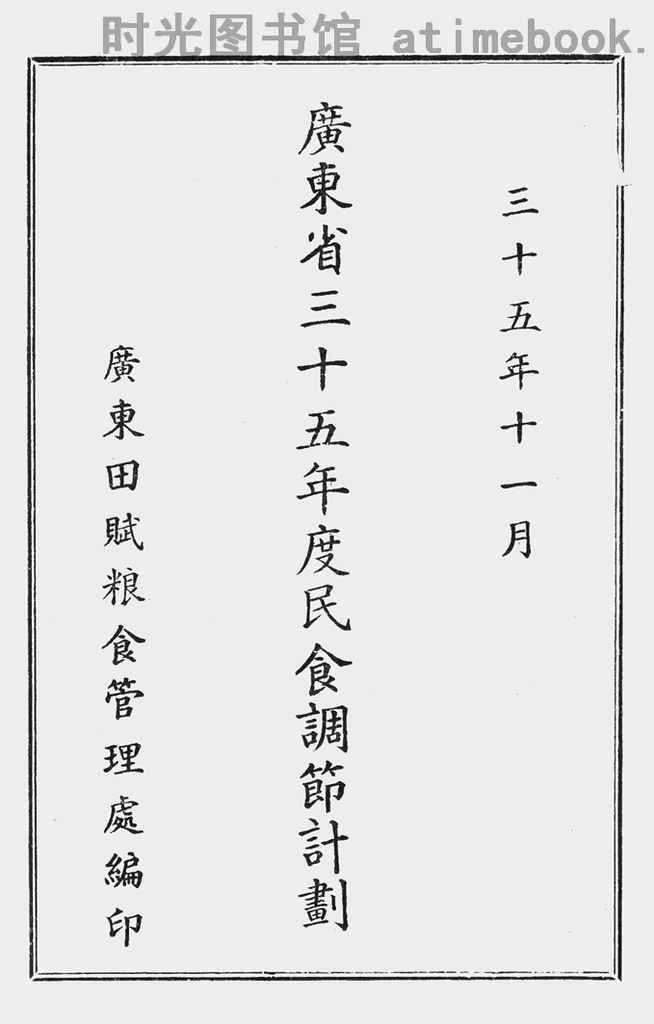 | 网盘路径:/时光图书馆珍藏系列/书籍文件/老图书/《广东省三十五年度民食调节计划》电子版合集.db | ||