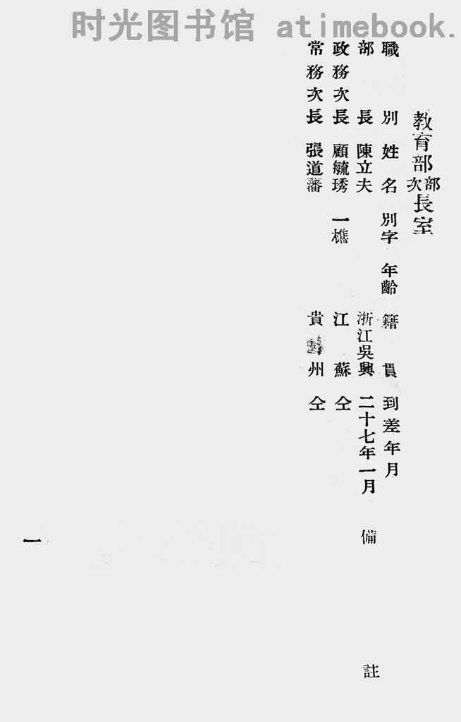 | 关键词:国民*,教育部,陈立夫,人员录, | ||
