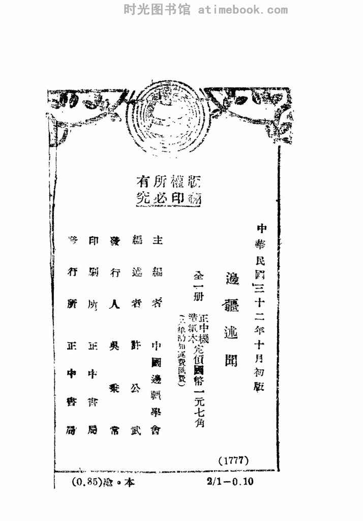 | 网盘路径:/时光图书馆珍藏系列/书籍文件/老图书/《边疆述闻》电子版合集.db | ||