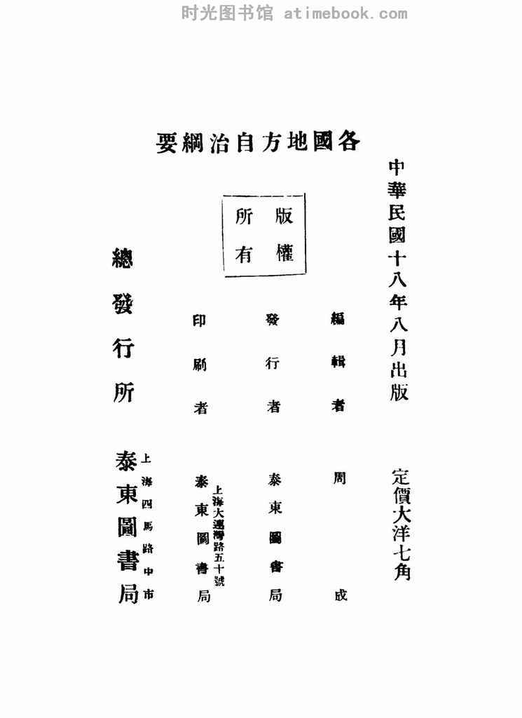 | 网盘路径:/时光图书馆珍藏系列/书籍文件/老图书/《各国地方自治纲要讲义》电子版合集.db | ||