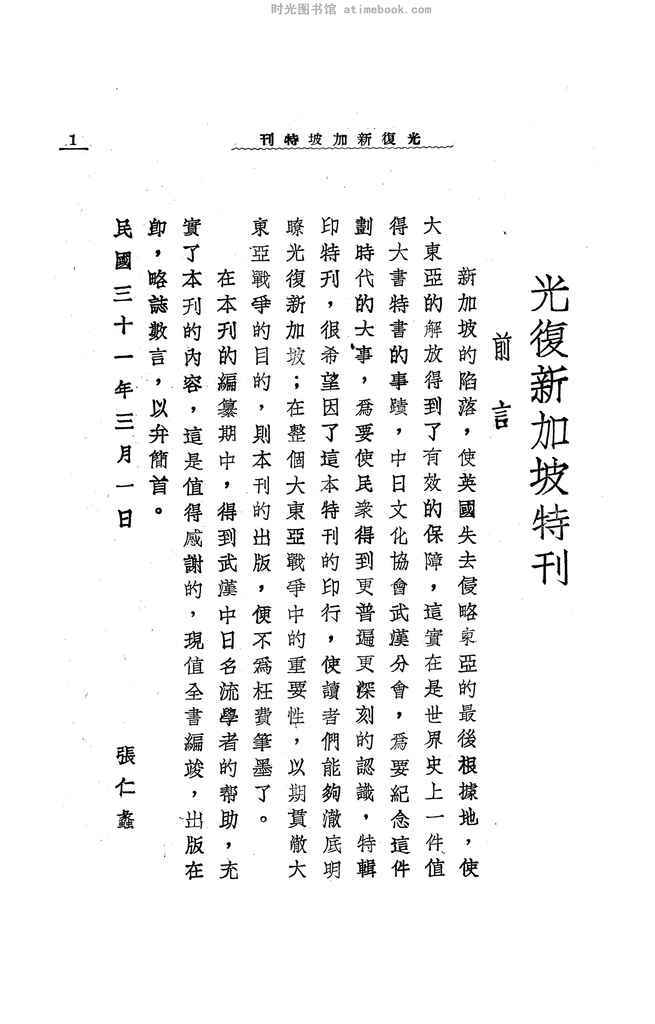 文件下载 名称:《光复新加坡特刊》电子版合集 关键词:历史,二战,新加坡, 出版地区:武汉 1942年3月20日 文件大小:50.09 MB 原始格式:db数据库 导出格式:png 下载方式:百度网盘、夸克网盘、阿里云盘、123云盘 网盘路径:/时光图书馆珍藏系列/书籍文件/老图书/《光复新加坡特刊》电子版合集.db 提示:也支持在线观看,安装阅读器即可,无需额外下载书籍文件。 下载地址: ★阅读器★ 百度网盘 阿里云盘 123云盘 夸克网盘 内容截图:(图片有压缩,网盘下载后更清晰) 书籍获取:书籍合集 喜欢 (0)