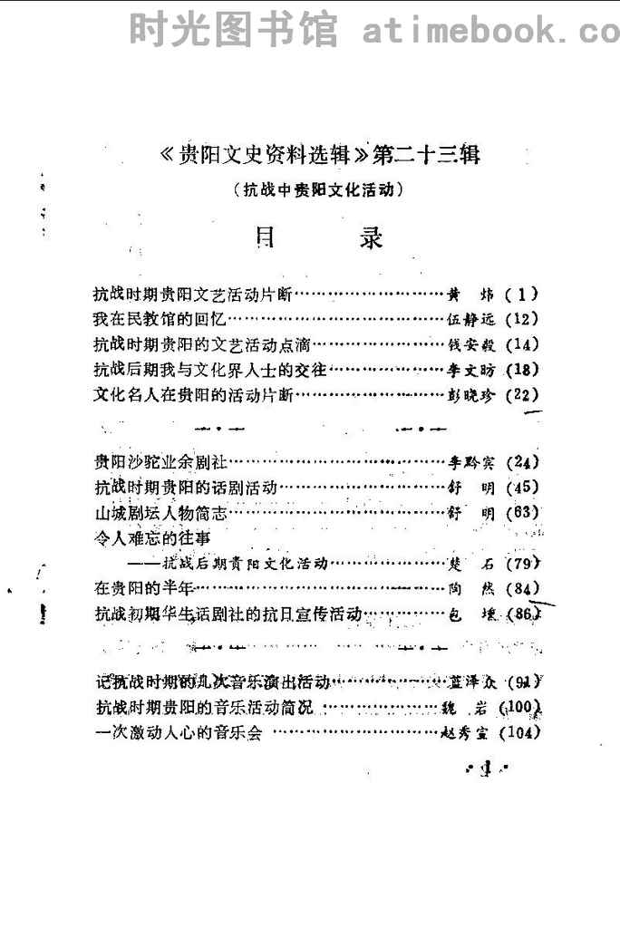 | 网盘路径:/时光图书馆珍藏系列/书籍文件/老图书/《贵阳文史资料选辑_第23辑_抗战中贵阳文化活动》电子版合集.db | ||