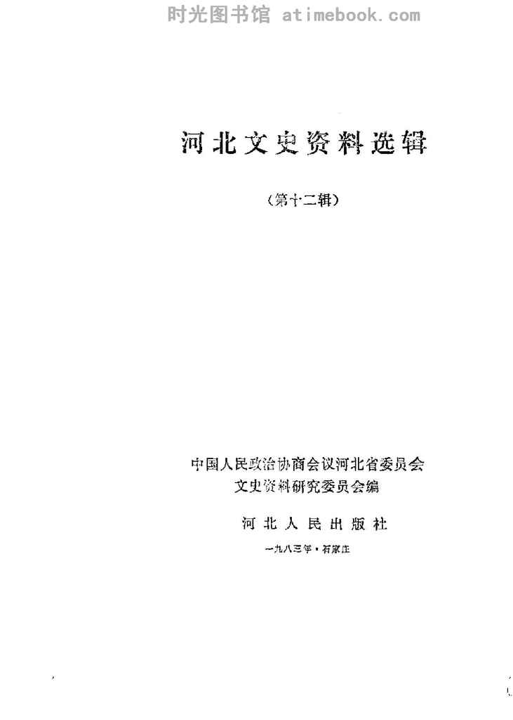 | 网盘路径:/时光图书馆珍藏系列/书籍文件/老图书/《河北文史资料选辑_第12辑》电子版合集.db | ||