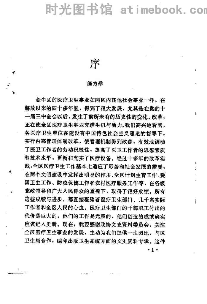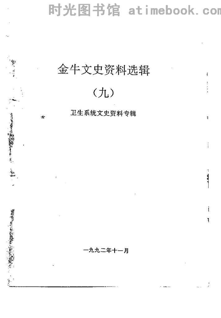 | 网盘路径:/时光图书馆珍藏系列/书籍文件/老图书/《金牛文史资料选辑_第9辑_卫生系统文史资料专辑》电子版合集.db | ||