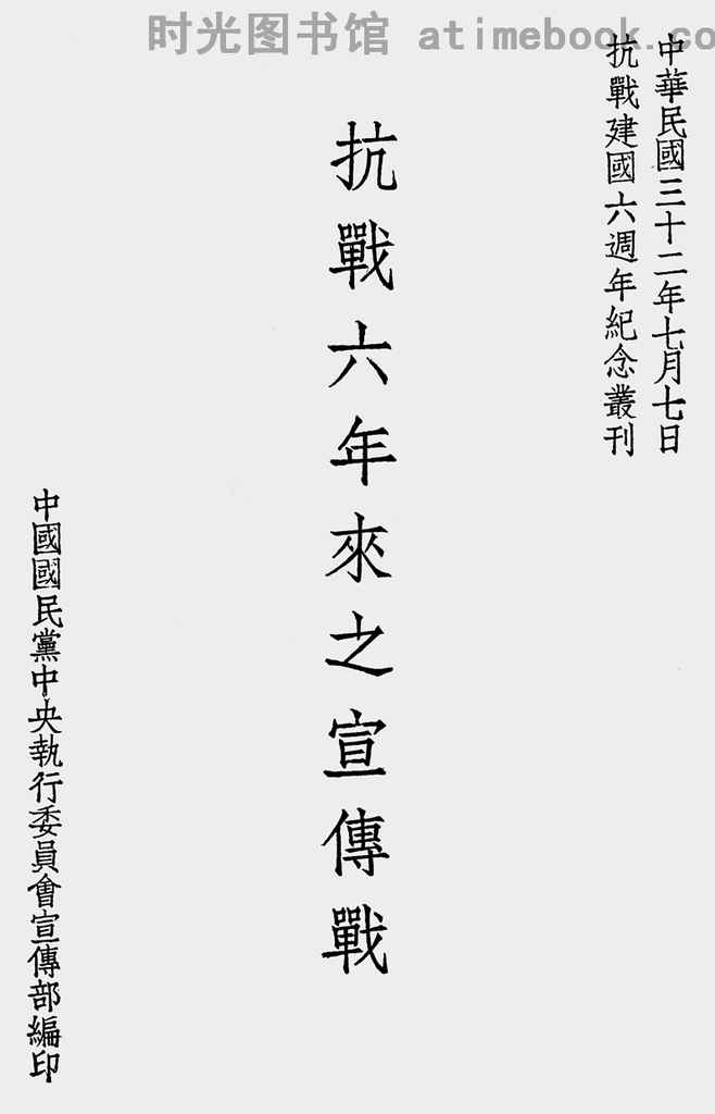 | 网盘路径:/时光图书馆珍藏系列/书籍文件/老图书/《抗战六年来之宣传战》电子版合集.db | ||