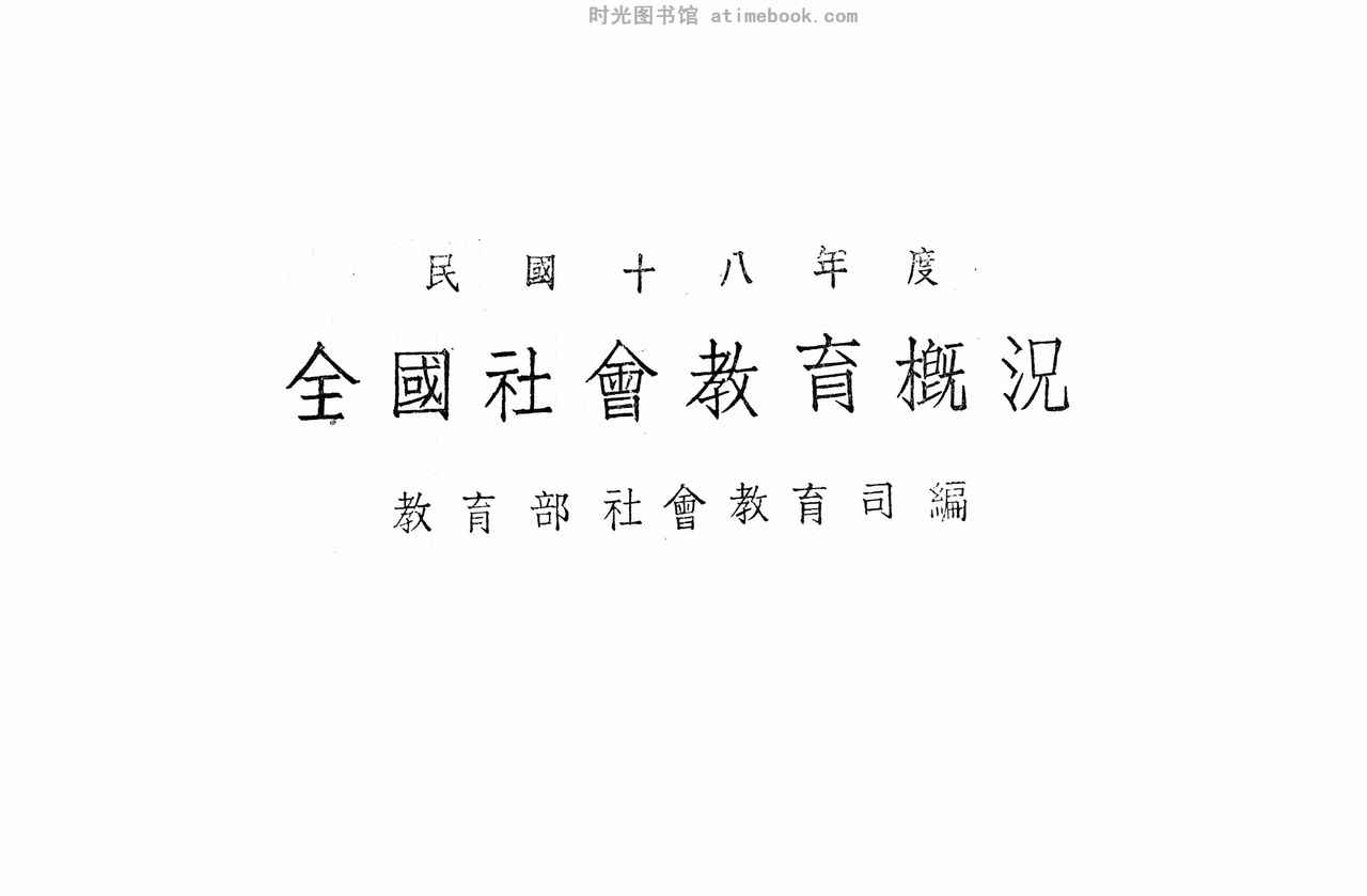 | 网盘路径:/时光图书馆珍藏系列/书籍文件/老图书/《民国十八年度全国社会教育概况》电子版合集.db | ||
