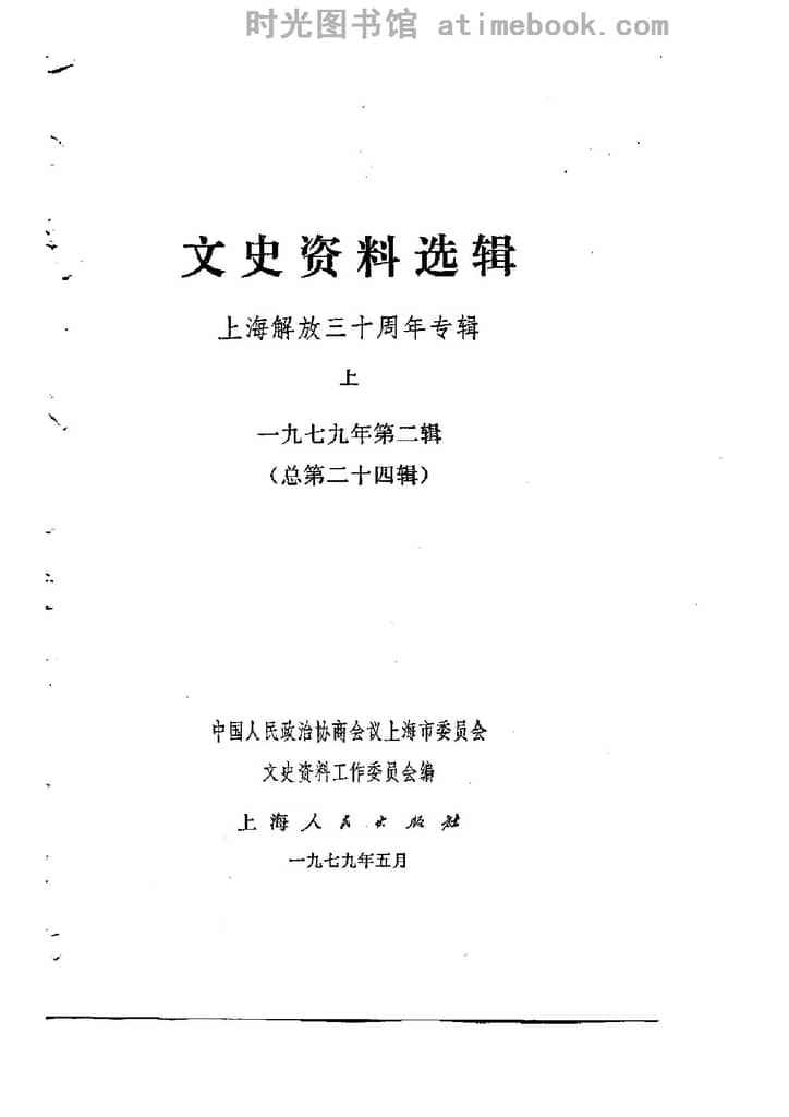 | 网盘路径:/时光图书馆珍藏系列/书籍文件/老图书/《上海文史资料选辑_1979年第2辑_总第24辑_上海解放三十周年专辑_上》电子版合集.db | ||