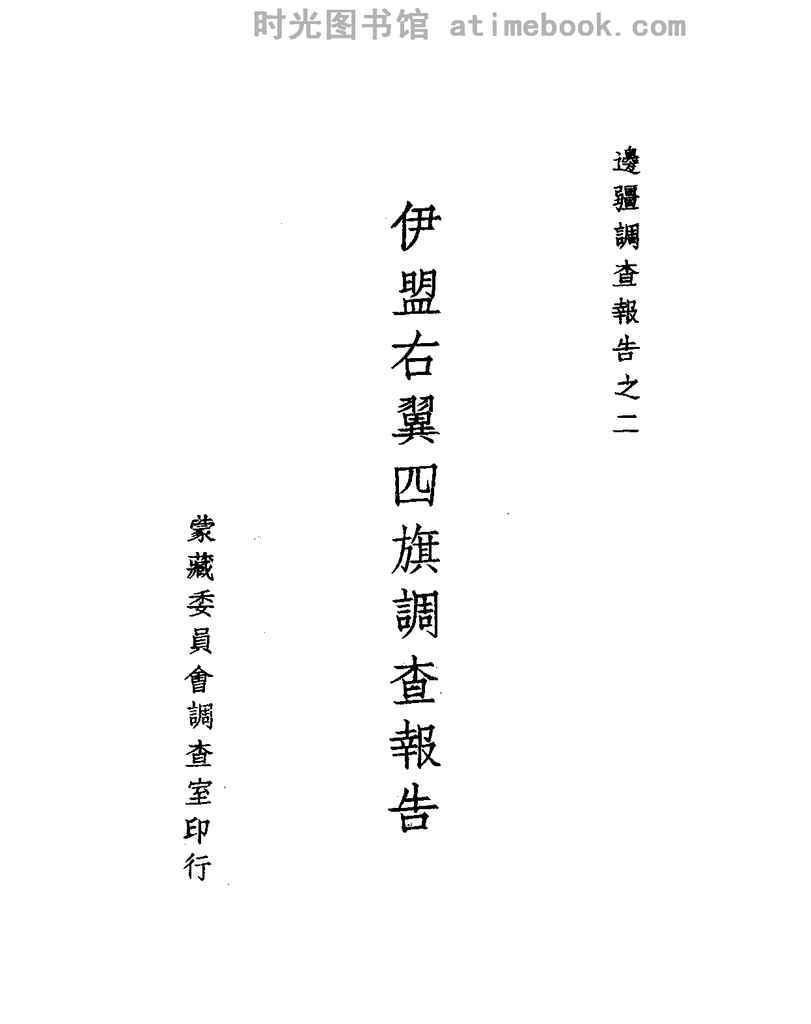 | 网盘路径:/时光图书馆珍藏系列/书籍文件/老图书/《伊盟右翼四旗调查报告》电子版合集.db | ||