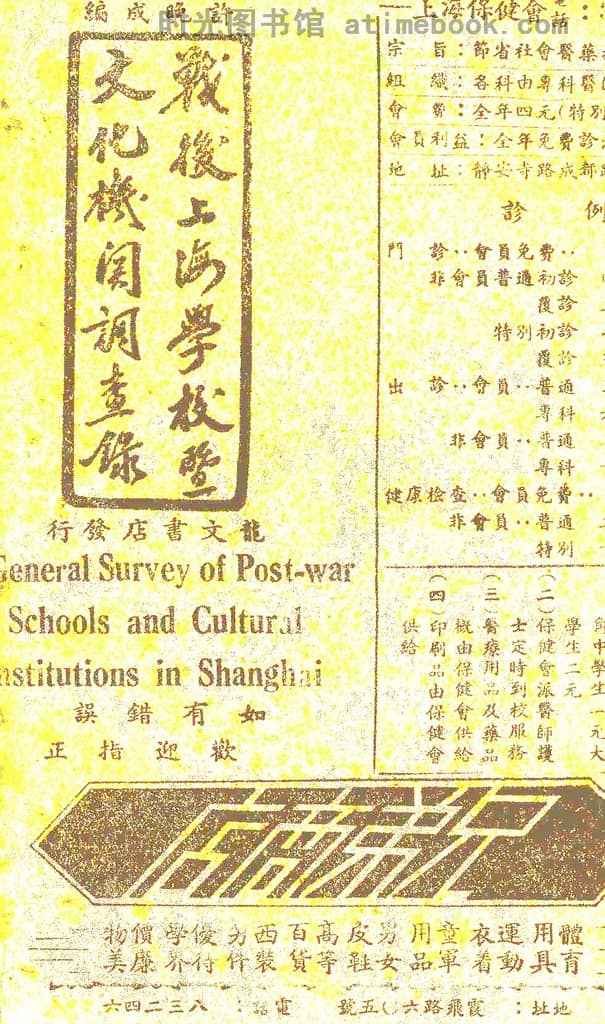 | 网盘路径:/时光图书馆珍藏系列/书籍文件/老图书/《战后上海学校暨文化机关调查录》电子版合集.db | ||