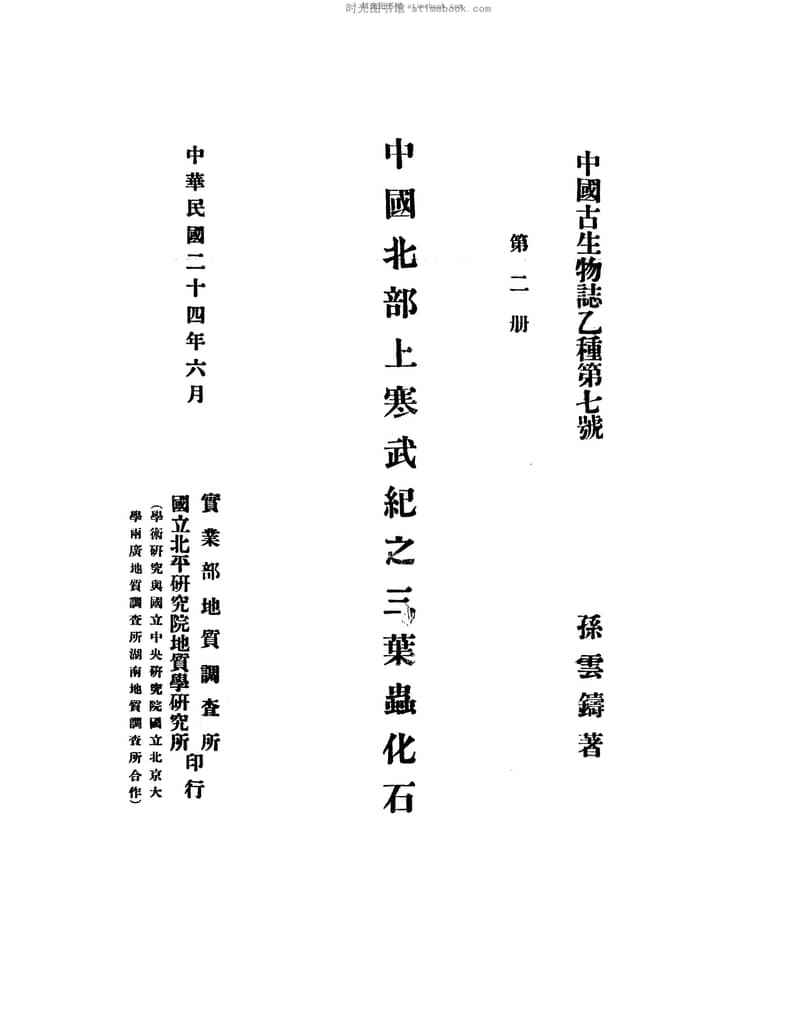 | 网盘路径:/时光图书馆珍藏系列/书籍文件/老图书/《中国北部上寒武纪之三叶虫化石》电子版合集.db | ||