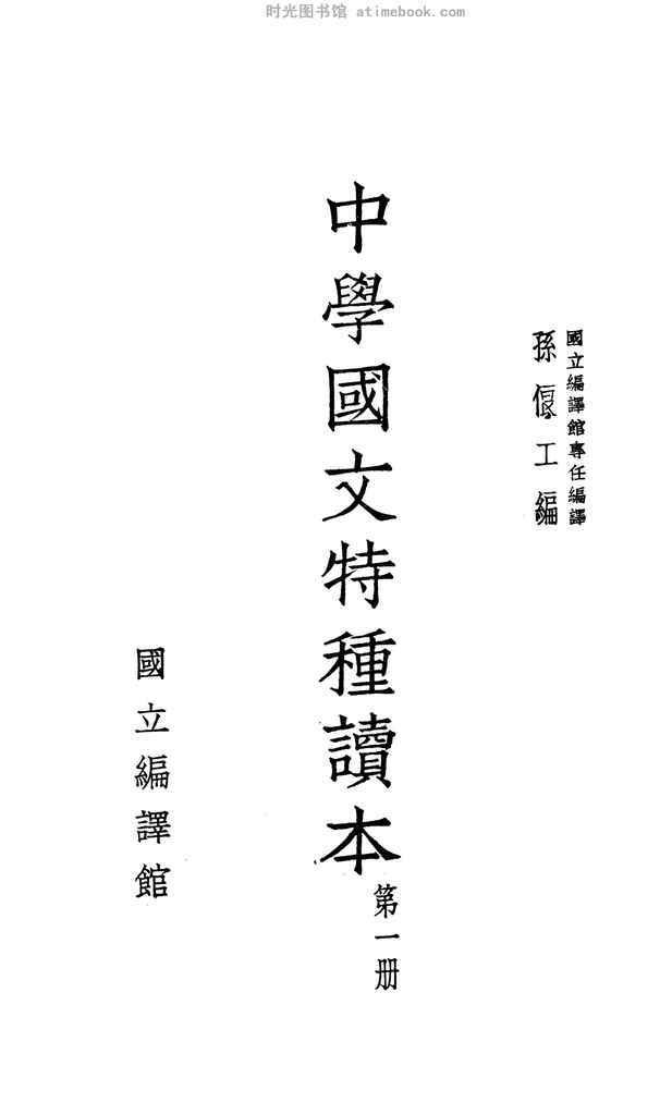 | 网盘路径:/时光图书馆珍藏系列/书籍文件/老图书/《中学国文特种读本(第1册)》电子版合集.db | ||