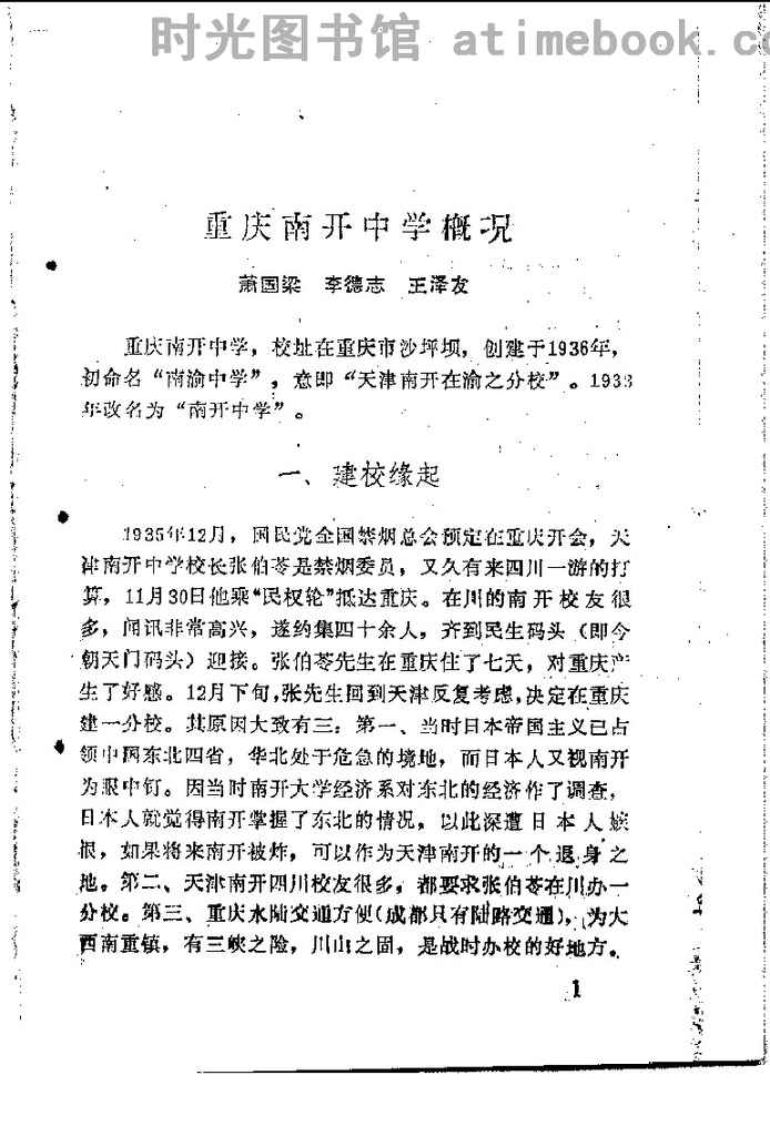 | 网盘路径:/时光图书馆珍藏系列/书籍文件/老图书/《重庆市沙坪坝区文史资料选辑_第1辑_南开中学专辑》电子版合集.db | ||