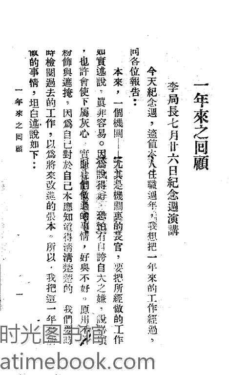 | 网盘路径:/时光图书馆珍藏系列/书籍文件/老图书/《一年来之回顾》电子版合集.db | ||