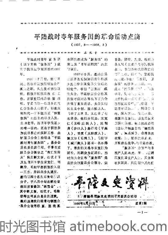| 网盘路径:/时光图书馆珍藏系列/书籍文件/老图书/《平陆文史资料_总第7期》电子版合集.db | ||