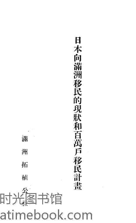 | 网盘路径:/时光图书馆珍藏系列/书籍文件/老图书/《日本向满洲移民的现状和百万户移民计划》电子版合集.db | ||