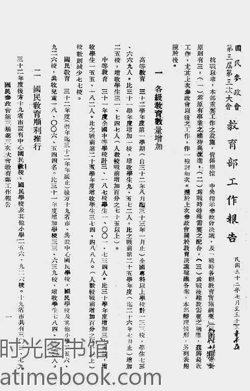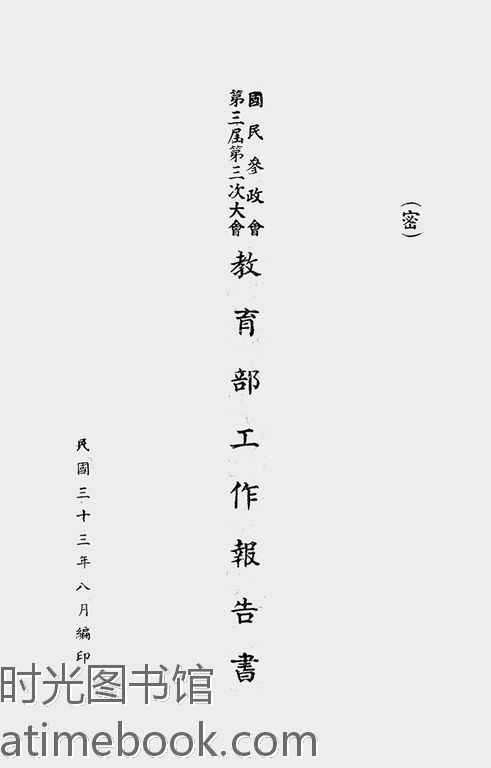| 网盘路径:/时光图书馆珍藏系列/书籍文件/老图书/《国民参政会第三届第三次大会教育部工作报告书》电子版合集.db | ||