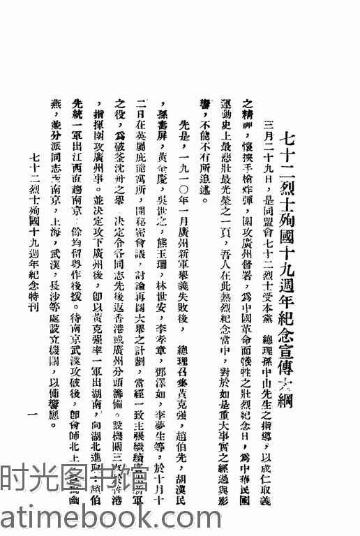 | 网盘路径:/时光图书馆珍藏系列/书籍文件/老图书/《七十二烈士殉国十九周年纪念特刊》电子版合集.db | ||