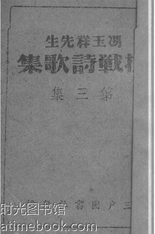 | 网盘路径:/时光图书馆珍藏系列/书籍文件/老图书/《冯玉祥先生抗战诗歌集(第三集)》电子版合集.db | ||