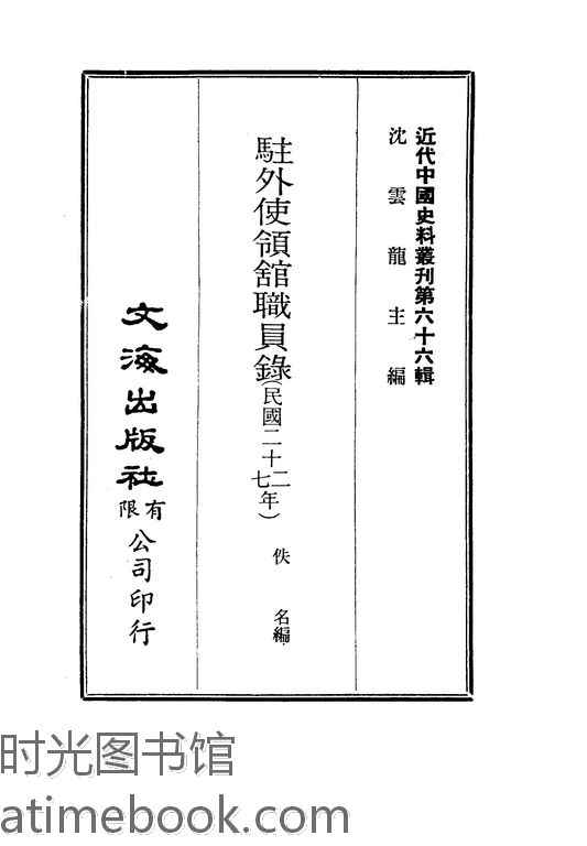 | 网盘路径:/时光图书馆珍藏系列/书籍文件/老图书/《驻外使领馆职员录(民国二十二—二十七年)》电子版合集.db | ||
