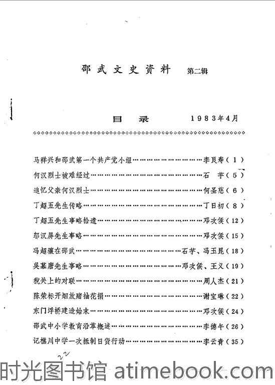 | 网盘路径:/时光图书馆珍藏系列/书籍文件/老图书/《邵武文史资料_第2辑》电子版合集.db | ||