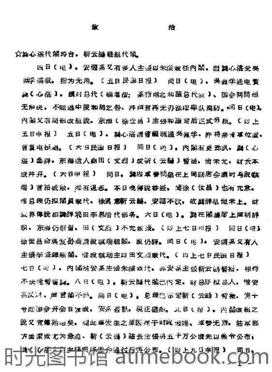 | 网盘路径:/时光图书馆珍藏系列/书籍文件/老图书/《大事史料长编草稿(一九一九年九月)》电子版合集.db | ||