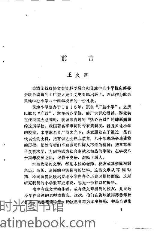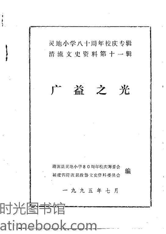 | 网盘路径:/时光图书馆珍藏系列/书籍文件/老图书/《清流文史资料_第11辑(广益之光_灵地小学八十周年校庆专辑)》电子版合集.db | ||