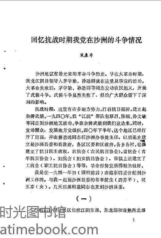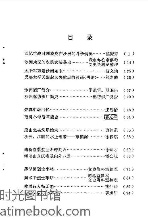 | 网盘路径:/时光图书馆珍藏系列/书籍文件/老图书/《江苏省沙洲县文史资料选辑_第2辑》电子版合集.db | ||