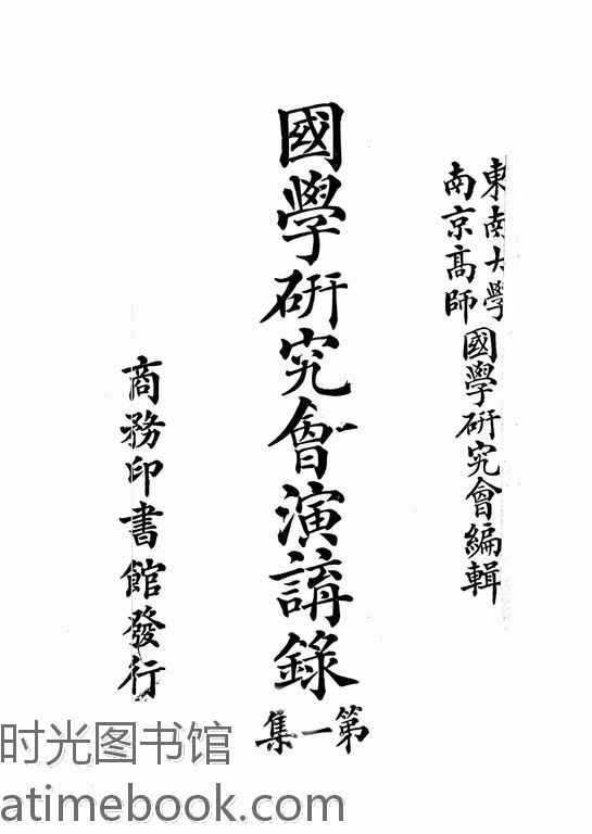 | 网盘路径:/时光图书馆珍藏系列/书籍文件/老图书/《国学研究会演讲录_第一集》电子版合集.db | ||