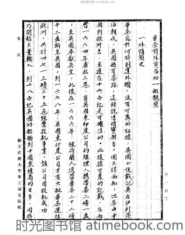 | 网盘路径:/时光图书馆珍藏系列/书籍文件/老图书/《华茶对外贸易的一般观察》电子版合集.db | ||