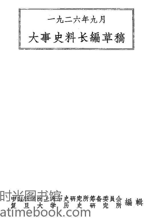 | 网盘路径:/时光图书馆珍藏系列/书籍文件/老图书/《大事史料长编草稿(一九二六年九月)》电子版合集.db | ||