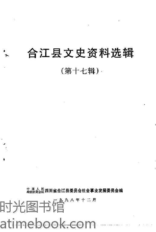 | 网盘路径:/时光图书馆珍藏系列/书籍文件/老图书/《合江县文史资料选辑_第17辑》电子版合集.db | ||
