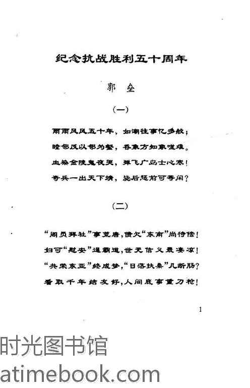 | 网盘路径:/时光图书馆珍藏系列/书籍文件/老图书/《烽火集_纪念抗日战争胜利五十周年》电子版合集.db | ||