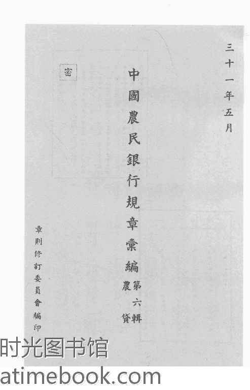 | 关键词:中国农民银行,规章汇编,章则修订委员会, | ||