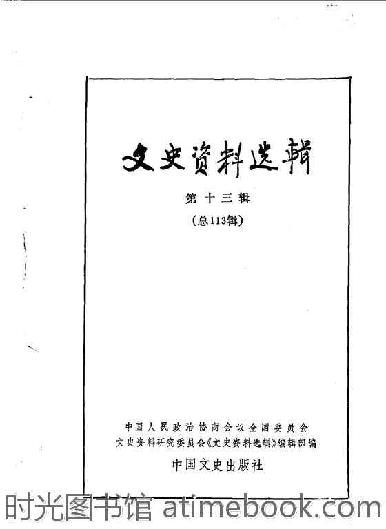 | 网盘路径:/时光图书馆珍藏系列/书籍文件/老图书/《文史资料选辑_第13辑_总113辑》电子版合集.db | ||