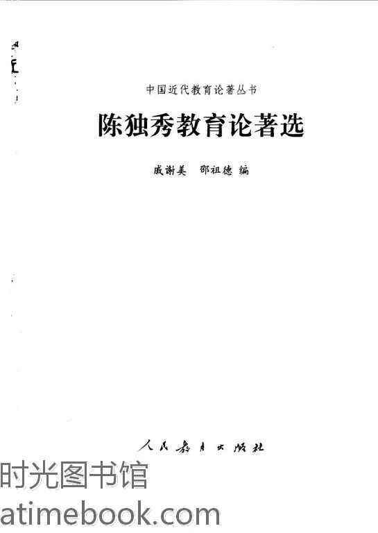 | 网盘路径:/时光图书馆珍藏系列/书籍文件/老图书/《陈独秀教育论著选》电子版合集.db | ||