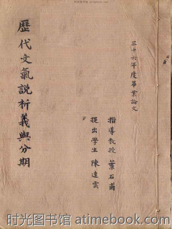| 网盘路径:/时光图书馆珍藏系列/书籍文件/老图书/《历代文气说析义与分期》电子版合集.db | ||