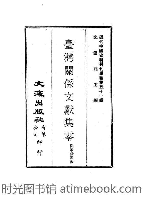 | 网盘路径:/时光图书馆珍藏系列/书籍文件/老图书/《台湾关系文献集零》电子版合集.db | ||