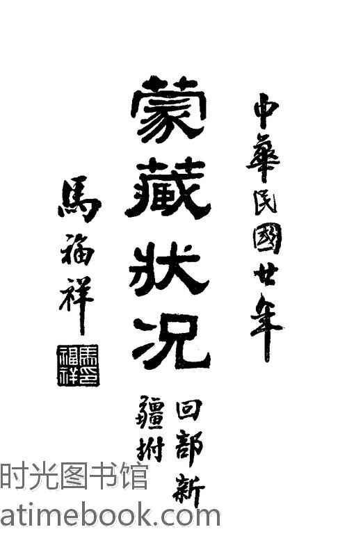 | 网盘路径:/时光图书馆珍藏系列/书籍文件/老图书/《蒙藏状况》电子版合集.db | ||